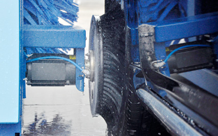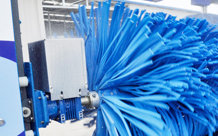 進口意大利塑玻絲輪刷,根據(jù)光電開關(guān)感應判斷車身位置,輪刷啟動至輪轂位置,開始清洗,正反旋轉(zhuǎn)刷洗輪轂,電腦洗車機全程電腦全自動控制輪刷伸縮。